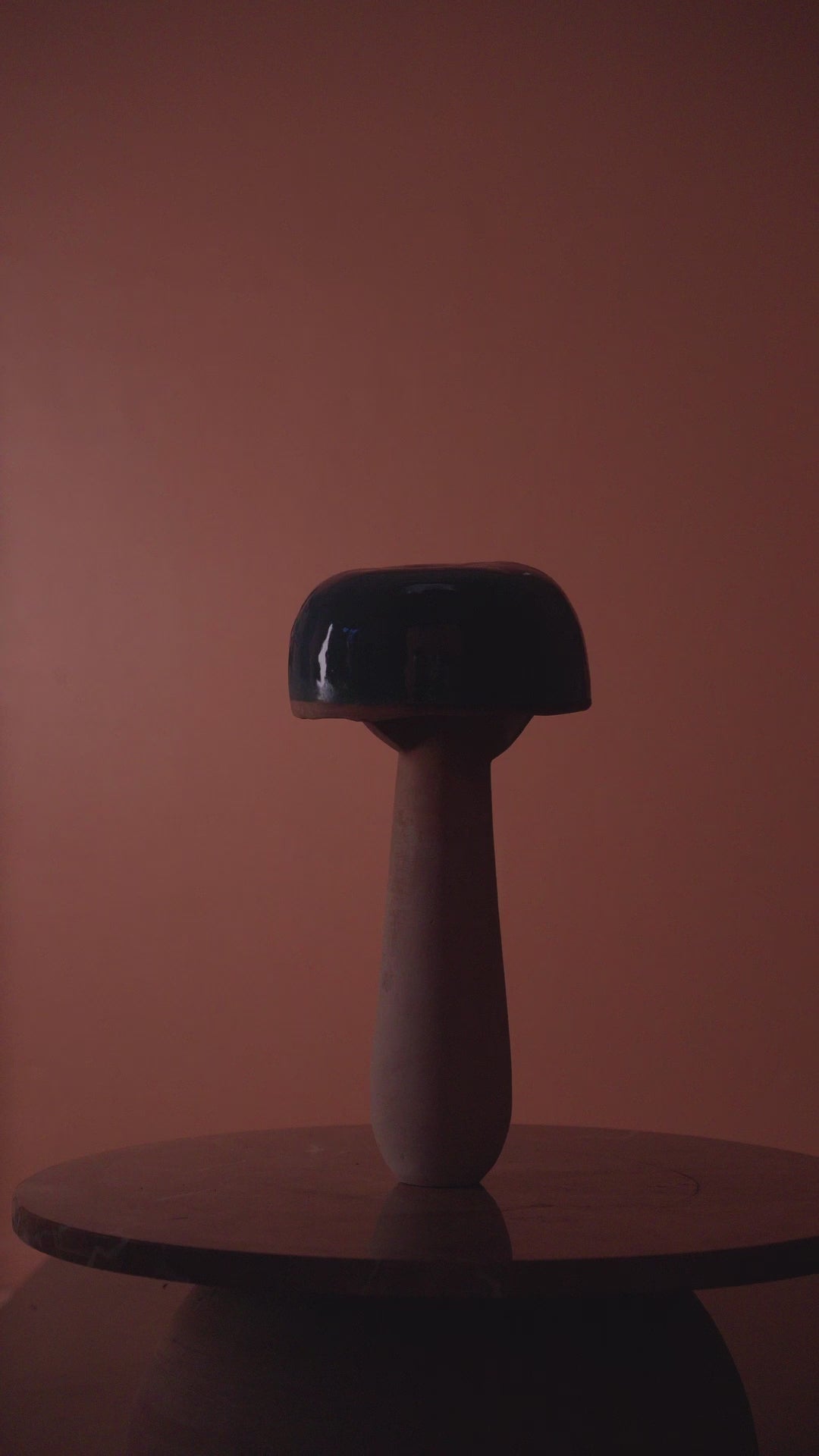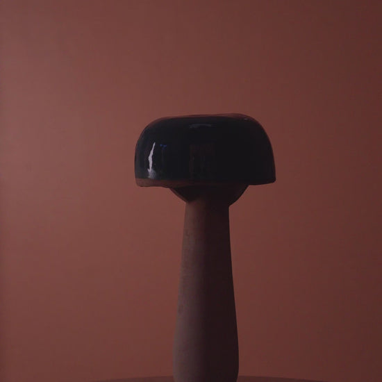 Con su silueta orgánica y contraste de texturas, Citrina forma parte de la colección FUNGI, una línea de luminarias que evocan la naturaleza y la transformación. Su base cerámica mate sostiene un sombrero vidriado en tonos oscuros y profundos, que al encenderse proyecta una luz tenue y envolvente.